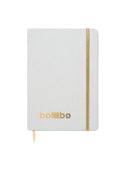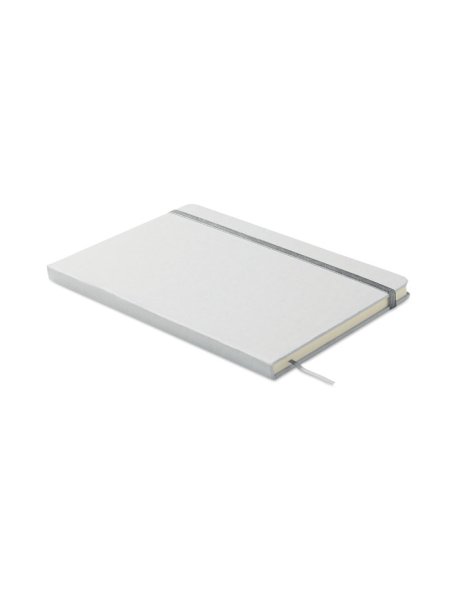 DIN A5 Notizbuch mit gebundenem Hard Cover aus 70% recyceltem Milchkarton und 30% recyceltem Papier. Weißes Cover. 80 Blatt (160 Seiten) liniertes Recyclingpapier. Nach der Gravur des Covers, wird die Farbe sichtbar. Farblich abgestimmtes elastisches Verschlussband und Lesebändchen.