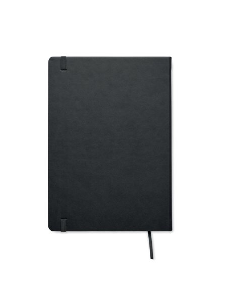 DIN A5 Notizbuch mit Hard Cover aus PU. 100 Blatt (200 Seiten) liniertes Recyclingpapier (80 g/m²). Farblich passendes elastisches Verschlussband und Lesebändchen. Hergestellt in der EU.