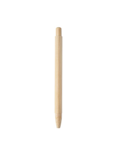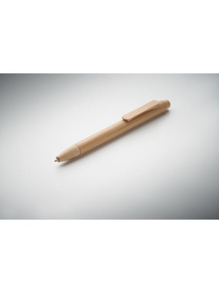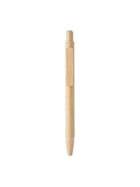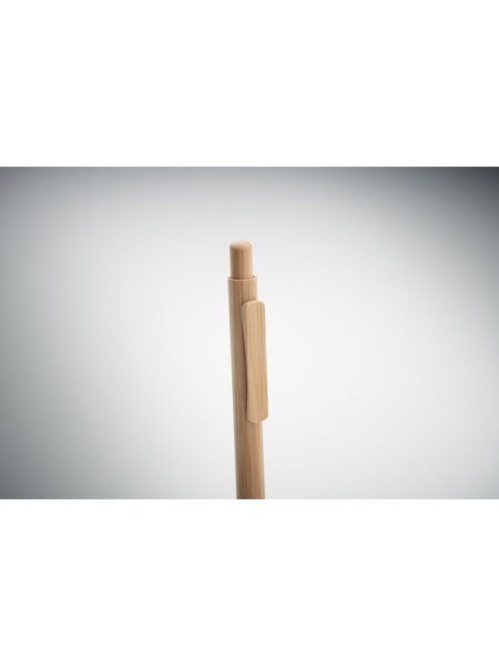 Druckkugelschreiber mit Schaft, Spitze, Clip und Gehäuse aus Bambus. Blaue Tinte.