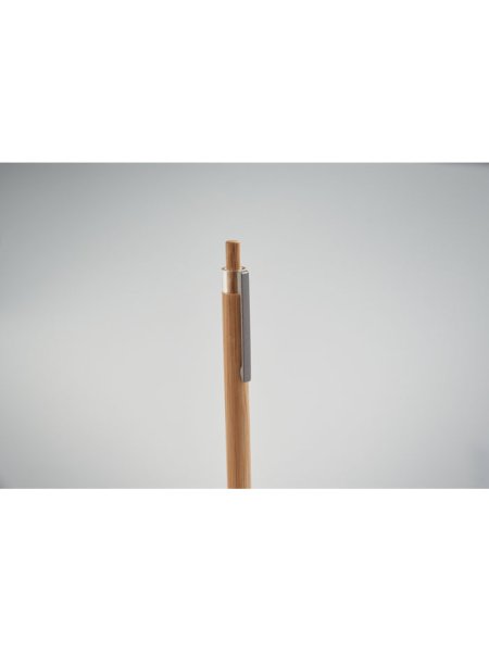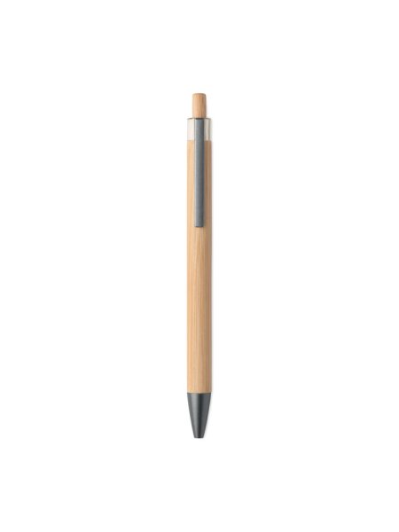 Druckkugelschreiber mit Schaft aus Bambus und Metallclip. Blaue Tinte.