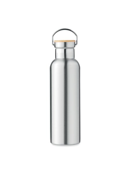 Hochwertige bedruckbare Isolierflasche aus Edelstahl mit Bambusdeckel und praktischem Henkel. Mit einer Füllmenge von 750 ml hält die Flasche Getränke länger warm oder kalt und ist zudem auslaufsicher. Der Bambusdeckel verleiht der Flasche eine natürliche und elegante Optik. Da Bambus ein Naturprodukt ist, können leichte Abweichungen in Farbe, Dekor und Maßen auftreten, die jede Flasche einzigartig machen. Ideal für unterwegs, nachhaltig und stilvoll!