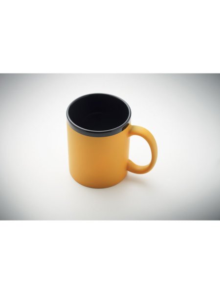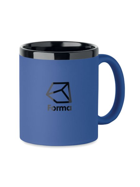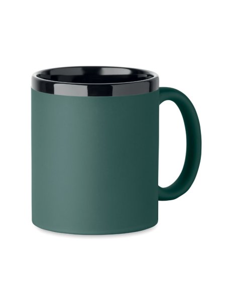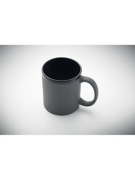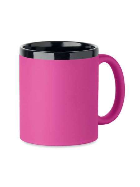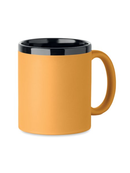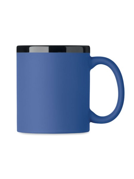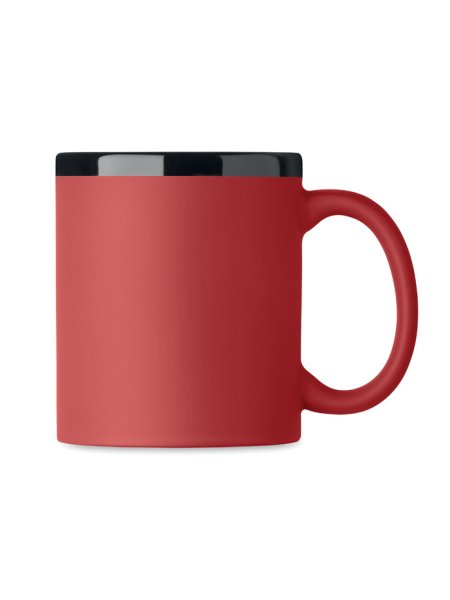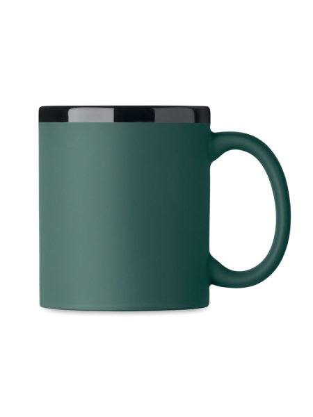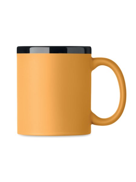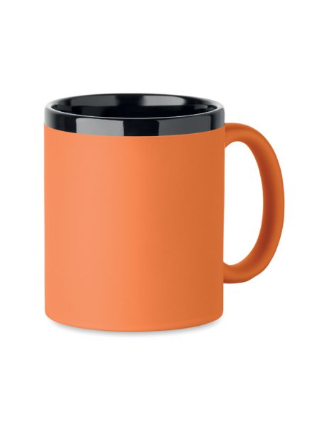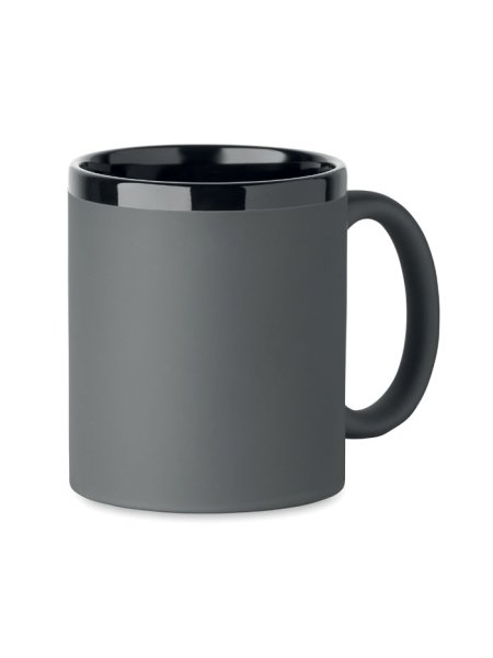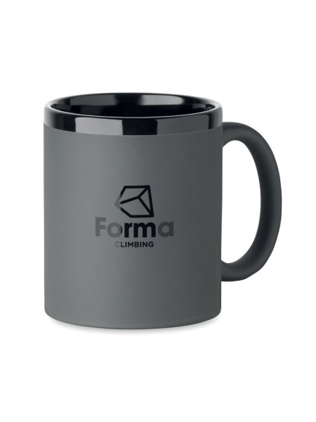 Keramikbecher mit Soft-Touch-Oberfläche und schwarzer Innenseite/Rand. Ideal für Gravur. Füllmenge: 300 ml. Einzeln verpackt in weißer Schachtel.