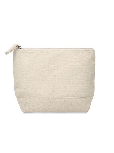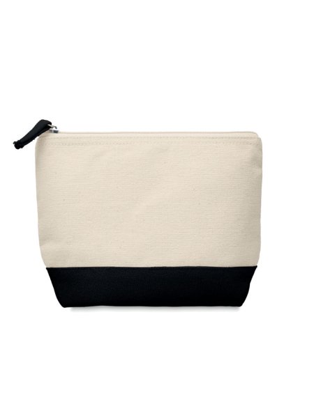 Kosmetiktasche mit farbig abgesetztem Boden und farblich abgestimmtem Reißverschluss-Puller. Baumwolle 340 g/m².