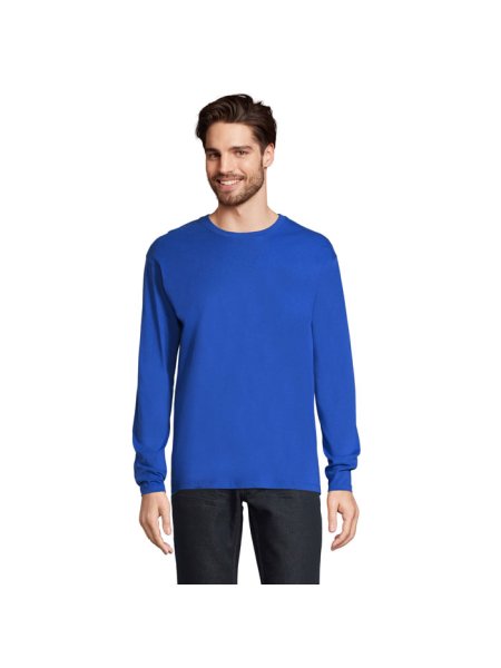 Sol's Monarch Herren-T-Shirt mit Aufdruck, Rundhalsausschnitt und langen Ärmeln, aus 100 % halbgekämmter, ringgesponnener Baumwolle (Jersey 150), mit Nackenband und rundem Elasthan-Rippkragen, ohne Armbündchen, als Schlauchware gefertigt. Um Ihre passende Größe zu ermitteln, beachten Sie bitte die Größentabelle unter „Details/Size Chart”.