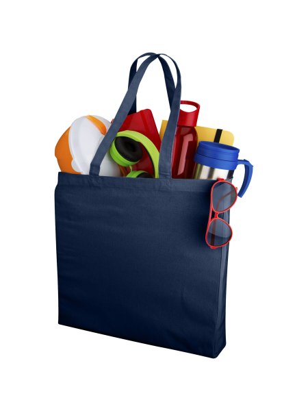 Diese bedruckbare Baumwolltasche ist vielseitig einsetzbar, sei es zum Einkaufen oder zum Transport von schweren Gegenständen wie Katalogen. Dank ihrer robusten Baumwollqualität von 220 g/m² und einer zusätzlichen Boden- und Seitenverstärkung ist sie äußerst strapazierfähig und kann mehrere Kilogramm tragen. Die 30 cm langen Schultergurte erleichtern das Tragen. Die großen Druckflächen bieten zudem ausreichend Platz für Firmenlogos oder Werbebotschaften.