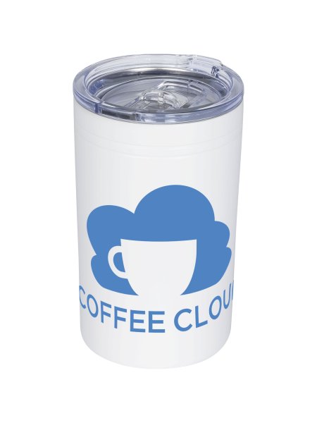 Trinkbecher zum Bedrucken: Dieser Becher besticht durch seine doppelwandige, vakuumisolierte Konstruktion, die Ihre Getränke länger heiß oder kalt hält. Ausgestattet mit einem durchsichtigen Stülpdeckel und praktischem Schiebeverschluss, bietet er eine einfache Handhabung und optimalen Schutz vor Verschütten. Dank seiner vielseitigen Nutzungsmöglichkeiten kann der Becher sowohl als klassischer Trinkbecher als auch als Isolator für Flaschen und Dosen verwendet werden. Mit einem Fassungsvermögen von 330 ml ist er ideal für unterwegs oder im Büro.