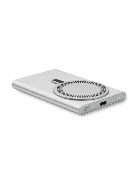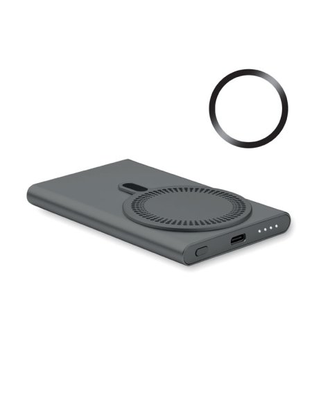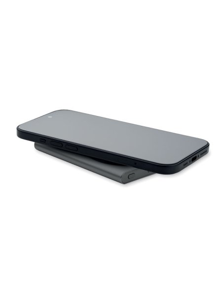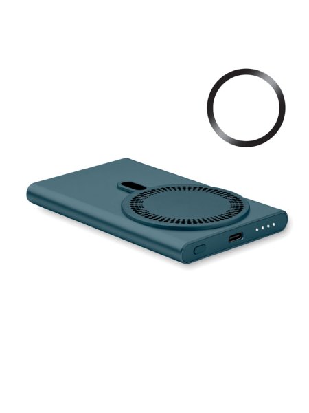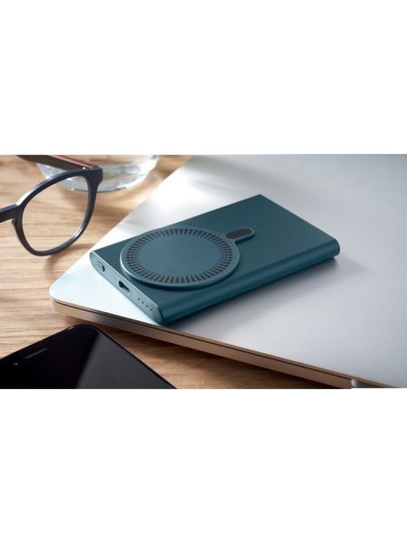 Magnetische kabellose Ladestation (15 W) aus recyceltem Aluminium und Powerbank (5000 mAh). Ausgang: DC 9V/1,66A. Kabelunterstützte Schnellladetechnik (20 W). Eingang/Ausgang: Typ-C. Power Delivery (PD)-Unterstützung zum Aufladen des neuesten MacPro®-Laptops. Eingang/Ausgang: Typ-C.
