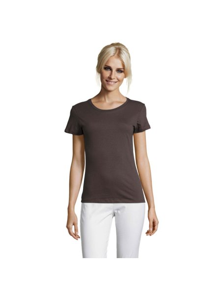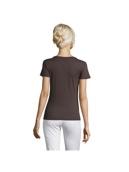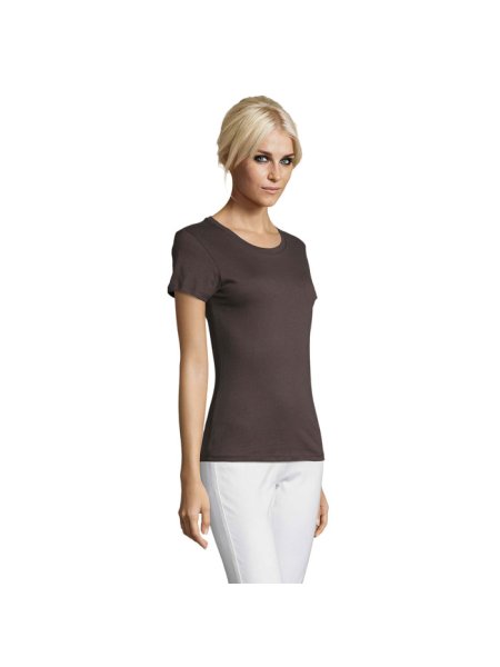 Diese Damen-T-Shirt überzeugt mit einem modisch taillierten Schnitt und hochwertigem Material. Es besteht aus 150g/m² Single-Jersey aus 100% halbgekämmter, ringgesponnener Baumwolle und bietet hohen Tragekomfort. Ausgestattet mit einem Rippkragen, Nackenband und Seitennähten ist es vielseitig und langlebig. Ideal für jeden Anlass.