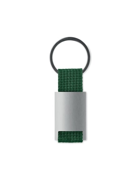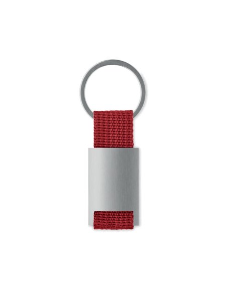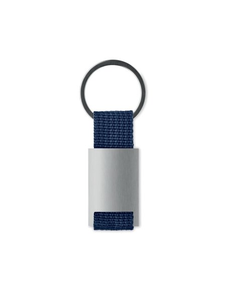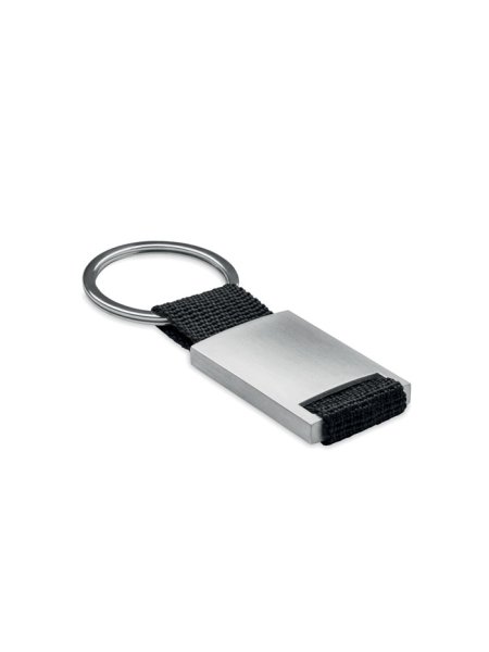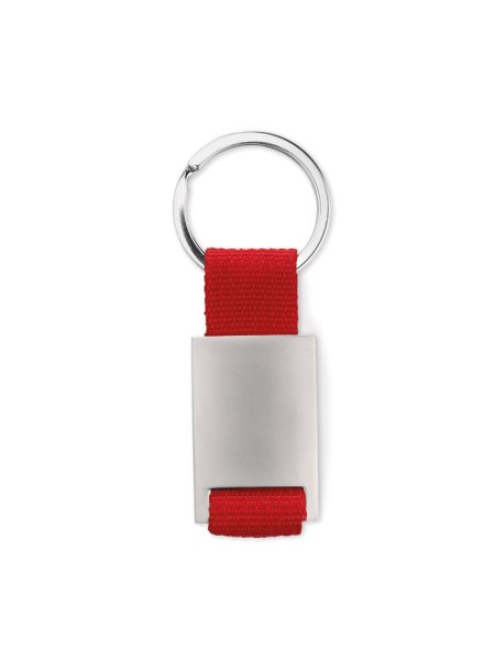 Schlüsselring aus Metall mit Zinklegierung und Textil-Anhänger.