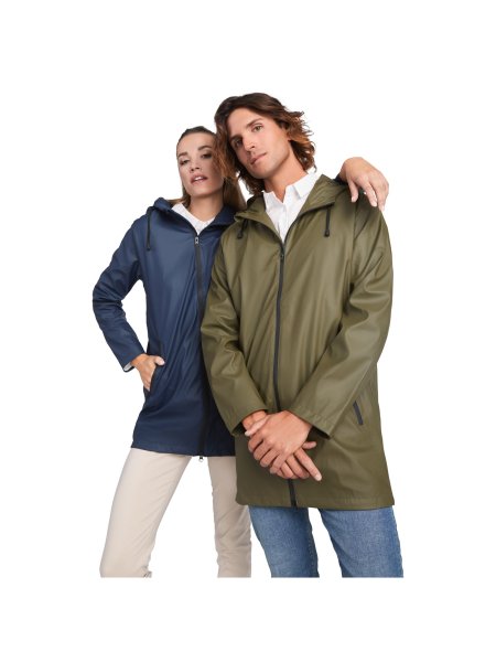 Dieser Regenmantel zum Personalisieren bietet zuverlässigen Schutz vor Nässe und Wind mit hitzeversiegelten Reißverschlüssen und Nähten. Die Kapuze mit Visier schützt zusätzlichen vor Regen und Wind. Kontrastierende Details in Schwarz verleihen dem Mantel eine moderne Note. Zwei seitliche Taschen mit Reißverschluss bieten sicheren Stauraum für Ihre Essentials. Der Schlitz am hinteren Saum sorgt für mehr Bewegungsfreiheit. Das herausnehmbare Etikett garantiert zusätzlichen Komfort. Der Mantel ist wasserdicht und somit ideal für wechselhafte Wetterbedingungen. Das Modell auf dem Foto ist 185 cm groß und trägt Größe M.
