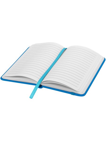 Das Spectrum-Notizbuch mit Werbeaufdruck ist ein vielseitiges Büroutensil und zugleich ein hervorragender Werbeartikel für Ihre Marke. Mit einem Hardcover aus Karton und einem eleganten Soft-Touch-PVC-Einband bietet es eine angenehme Haptik und langlebigen Schutz. Die 96 linierte Seiten aus nachhaltigem Papier (60 g/m²) sind perfekt für das Festhalten von schnellen Gedanken oder ausführlichen Notizen. Im handlichen A6-Format passt es mühelos in jede Tasche und liegt angenehm in der Hand. Farblich abgestimmte Details wie das Lesezeichenband und der elastische Verschluss verleihen dem Notizbuch eine stilvolle Note.
