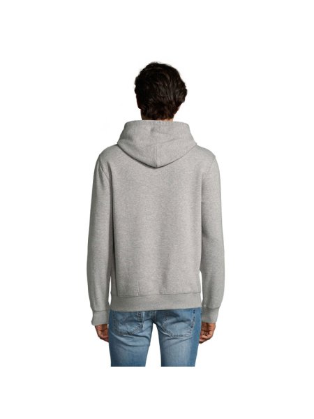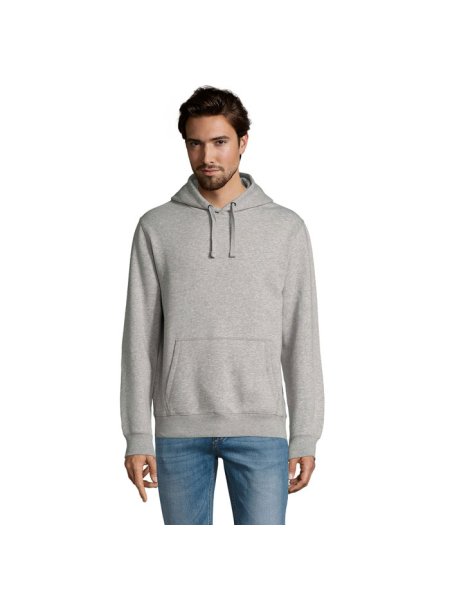 SOL'S SPENCER Herren Sweater 280g. Kängurutasche. Schlauchware. Gefütterte Kapuze mit farblich abgestimmter Kordel. Feinrippeinfassung an Ärmelbündchen und Saum 2x2. Halbmondpasse auf der Krageninnenseite. Nackenband auf der Krageninnenseite. Material: 80% Baumwolle Ringspun - 20% Polyester. Innen angeraut. Außenmaterial 100% Baumwolle. OEKO-TEX®. Verkauf nur inklusive Werbeanbringung.