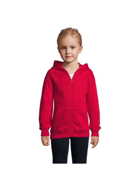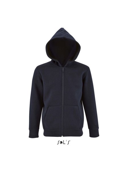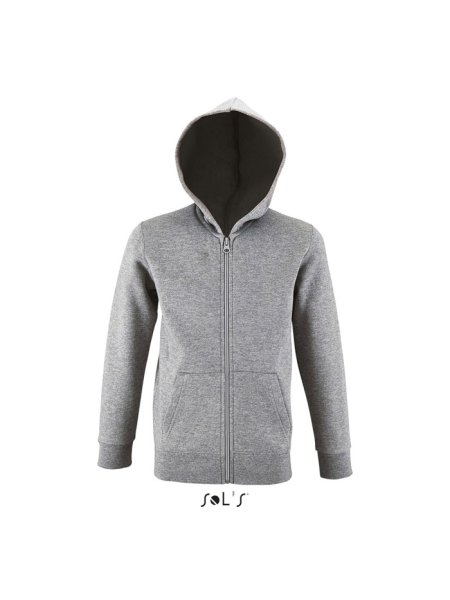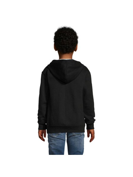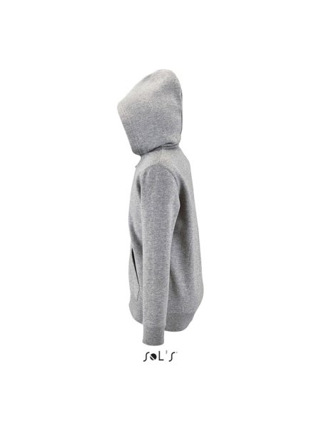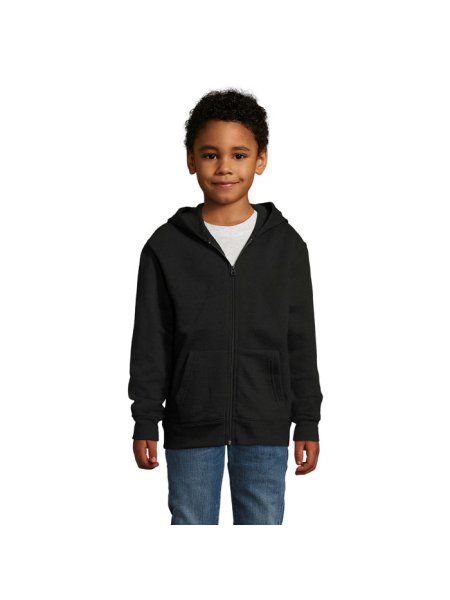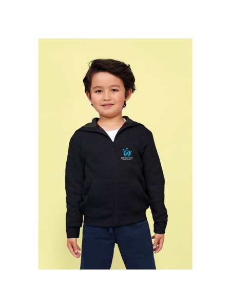 Stone Kinder-Hoodie zum Bedrucken (SOL'S): Diese Kapuzenjacke mit durchgehendem Reißverschluss bietet optimalen Komfort. Sie ist mit zwei praktischen Kängurutaschen, Rippenbündchen am Saum und an den Ärmeln sowie Seitennähten ausgestattet. Die Jacke ist "No Label" für einfache Personalisierung. Material: 260 g/m², innen angerautes Material aus 50 % Baumwolle und 50 % Polyester. Verfügbare Größen: 6 Jahre (106–116 cm), 8 Jahre (118–128 cm), 10 Jahre (130–140 cm), 12 Jahre (142–152 cm).