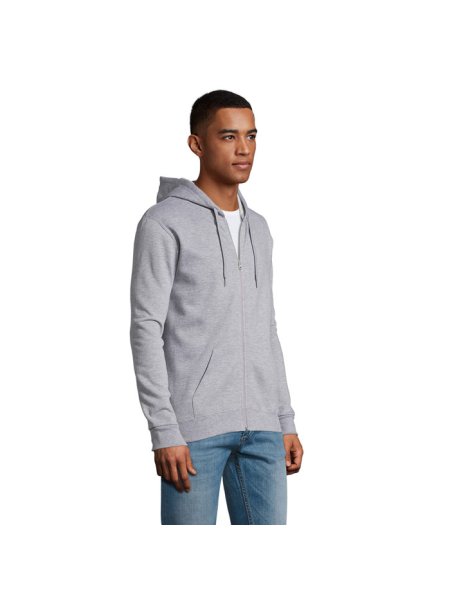 SOL'S STONE Unisex-Kapuzenjacke/Hoodie mit Druck und durchgehendem Reißverschluss sowie zwei Känguru-Taschen auf der Vorderseite. Die Kapuze verfügt über einen Ton-in-Ton-Kordelzug, während die Rippenbündchen am Saum und an den Ärmeln für einen optimalen Sitz sorgen. Seitennähte. Ohne Label. Das angeraute Material besteht aus 50 % Baumwolle und 50 % Polyester und hat ein Gewicht von 260 g/m².