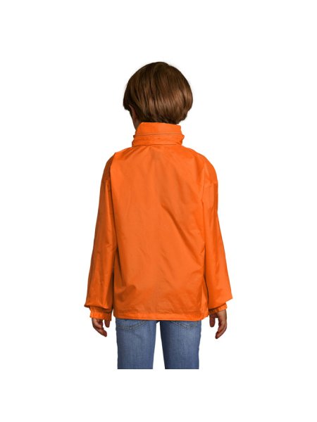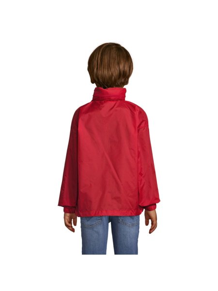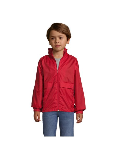 SOL'S SURF Kinder Windbreaker mit Reißverschluss. Einer der günstigsten Windbreaker auf dem Markt. Winddicht und wasserabweisend. Kragen mit Reißverschluss zum Verstauen der Kapuze, Kordelzug am Saum, elastische Bündchen, Belüftungsösen. Zwei Reißverschlusstaschen, die rechte Tasche dient zum Verstauen der gefalteten Windjacke, mit elastischem Gürtel. Material: 210g/m² 100% Nylon 210T. Größen: 5-6 Jahre: 105-116 cm (XL), 7-8 Jahre: 117-128 cm (XXL), 9-11 Jahre: 129-141 cm (3XL), 12-14 Jahre: 142-164 cm (4XL), 15-16 Jahre.: 165-176 cm (5XL)