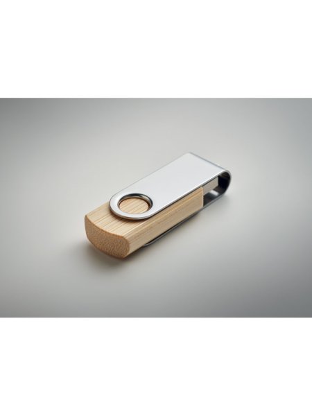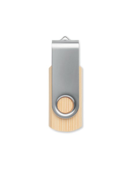 Dieser bedruckbare 16GB USB Stick verfügt über ein Gehäuse aus Bambus und eine drehbare Schutzabdeckung aus Metall. Durch einfaches Drehen der Abdeckung kann der USB Stick an einen USB-Anschluss angeschlossen werden. Der Stick bietet ausreichend Speicherplatz und überzeugt durch sein natürliches Design.