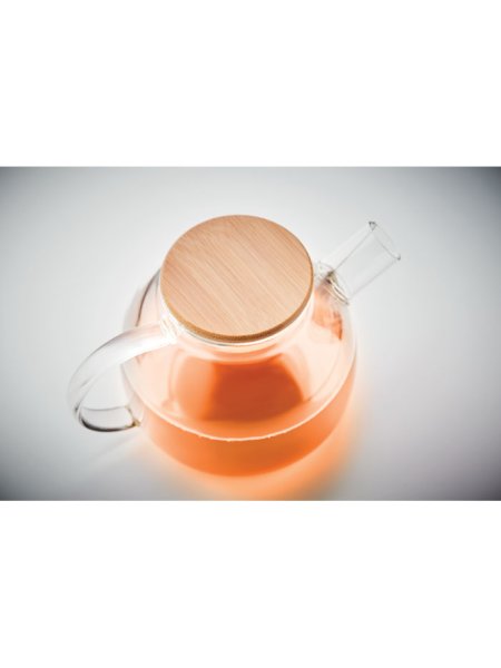 Elegante Teekanne aus hochwertigem Borosilikatglas, ideal für Teeliebhaber. Die Kanne hat eine Füllmenge von 850 ml und ist mit einem natürlichen Bambusdeckel ausgestattet, der Wärme bewahrt und für eine stilvolle Optik sorgt. Ein integriertes Tee-Sieb ermöglicht die einfache Zubereitung von losem Tee. Da Bambus ein natürliches Material ist, können Farbton und Maße leicht variieren, was jede Kanne zu einem Unikat macht. Diese Variationen können sich auch auf das Ergebnis einer Veredelung auswirken. Perfekt für den täglichen Gebrauch oder als Geschenk für Teegenießer.