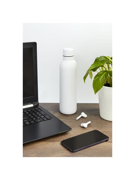Trinkflaschen mit Logo: Unsere haltbaren, mit Ihrem Logo personalisierbaren Trinkflaschen zeichnen sich durch eine doppelwandige Edelstahlkonstruktion mit Kupferisolierung aus, die Ihre Getränke bis zu 48 Stunden kühl und für mindestens 12 Stunden warm hält. Dank dieser Konstruktion bleibt die Außenseite kondensationsfrei. Die Flaschen sind mit einer modischen, widerstandsfähigen Pulverbeschichtung versehen und verfügen über einen dichten Schraubverschluss aus Edelstahl. Mit einem Volumen von 510 ml und verpackt in einem ansprechenden Avenue-Geschenkkarton, bieten diese Flaschen eine elegante Lösung für Werbegeschenke.