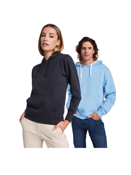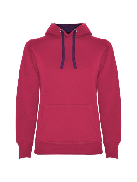 Dieser figurbetonte Damen-Hoodie kombiniert Stil und Komfort. Er verfügt über eine zweifarbige, doppellagige Kapuze mit verstellbarem Kordelzug in Kontrastfarbe. Verdeckte Nähte am Kragen sorgen für ein elegantes Finish, während die praktische Kängurutasche Platz für kleine Essentials bietet. Der elastische 1×1-Rippstrick an Ärmeln und Saum sorgt für eine perfekte Passform. Ein besonderes Detail ist der Daumenschlitz, der zusätzlichen Komfort und Funktionalität bietet. Perfekt für einen sportlich-modischen Look.